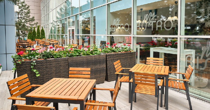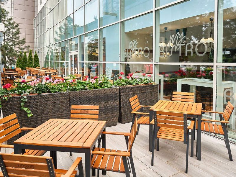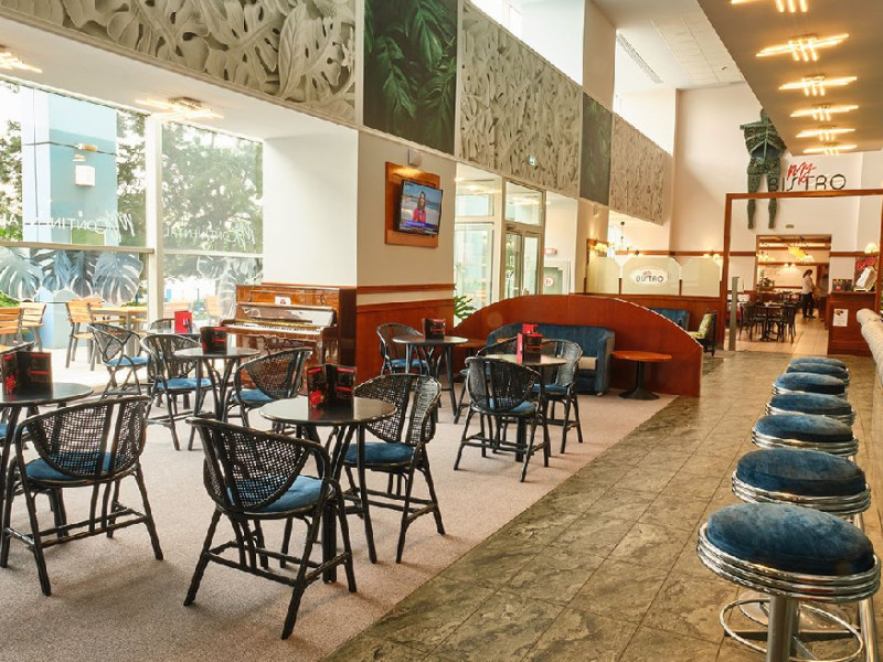in incinta hotelului MyContinental Bucuresti se afla MyBistro, restaurantul ideal pentru un pranz energizant sau o cina relaxanta. Pentru momentele dulci, Cofetaria Continental va va uimi cu gustul perfect al prajiturilor si produselor de patiserie realizate in laboratorul propriu. Iar pentru momentele de relaxare sau pentru intalnirile din timpul zilei, va recomandam barul de zi din incinta hotelului nostru, a carui gama impresionanta de bauturi acopera o varietate mare de gusturi.
