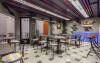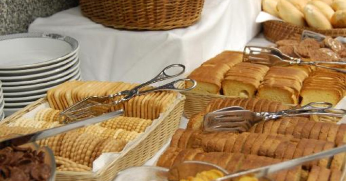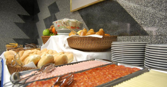Oaspetii pot savura un mic dejun tip bufet, in sala de mese a hotelului sau in camera proprie. De asemenea, in incintă există un bar, care serveste băuturi pană seara tarziu.