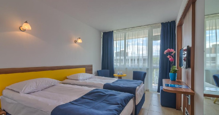 Dotari: sistem de acces in camera pe baza de cartela, aer conditionat, TV LCD, telefon, baie cu cabina de dus, cosmetice hoteliere, balcon cu mobilier, suport bagaje.