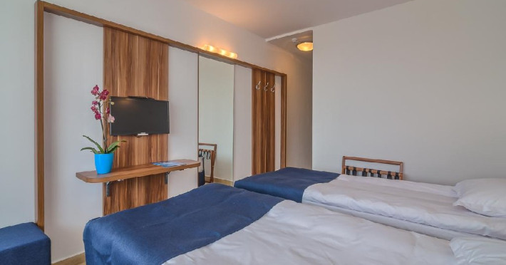 Dotari: sistem de acces in camera pe baza de cartela, aer conditionat, TV LCD, telefon, baie cu cabina de dus, cosmetice hoteliere, suport bagaje.