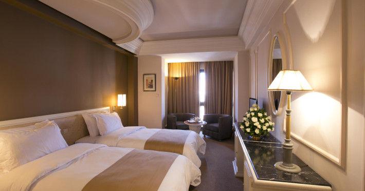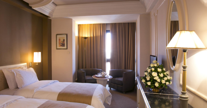 The hotel Hotel Nassim is equipped with a 24h reception, Wi-Fi, parking spaces as well as a TV lounge with satellite TV. In the outdoor area of the property you will find a pool (open all year), where sun loungers are available for free. Furthermore, outside you can find a terrace. You can store your valuables in the safe, and your luggage in the hotel`s storage room. To clean your clothes there is a laundry service. For conventions and other business meetings, the hotel offers a business centre. Catering Your physical well-being is catered for by a restaurant with terrace and the pool bar. The drinks menu of the hotel includes water, soft drinks and wine.
