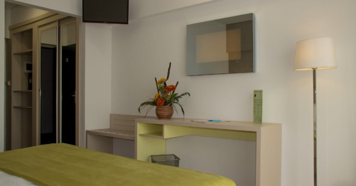 The hotel Hotel Navegadores is located approximately 500 m from the private beach. The city centre is only around 200 m away. The hotel has a 24h reception, internet access, a jacuzzi as well as parking spaces (for a fee). At the pool, deck chairs are available for free. Inside the hotel you can use an indoor pool. For conventions and other business meetings, the hotel offers a conference area. American Express, Euro/Master Card and Visa are accepted as means of payment. Catering As catering services the hotel offers half board. Your physical well-being is catered for by a buffet restaurant with terrace. Distances- Airport: approximately at 60 km