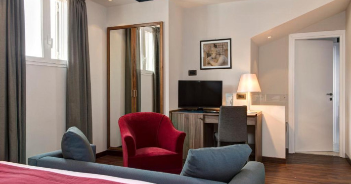 Toate camerele hotelului au aer condiționat și minibar. Baia privată include articole de toaletă gratuite si uscător de păr. Zilnic este oferit un mic dejun tip bufet cu produse dulci și sărate, care include branzeturi, mezeluri, produse de patiserie și fructe proaspete. La cerere sunt disponibile si optiuni fără gluten.