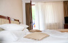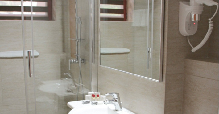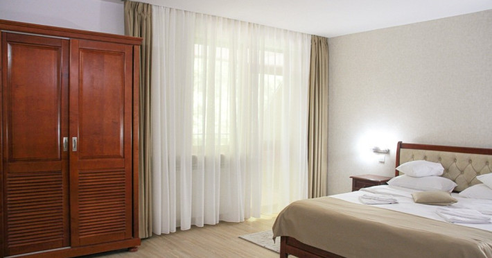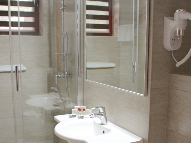 Camerele dispun de baie cu cabina de dus, uscator de par, cosmetice, prosoape, halat de baie, papuci de unica folosinta, minibar, tv LCD, seif, telefon, balcon cu mobilier de ratan, acces cu cartela magnetica. Patul suplimentar se ataseaza doar in camerele duble superioare sau camera dubla de lux, acestea avand o suprafata mai mare.Tipuri de camere: 23 camere duble standard matrimoniale, 5 camere duble standard twin, 6 camere duble superioare/ de lux, 3 camere duble twin fara balcon, 3 apartamente standard, 1 apartament superior.