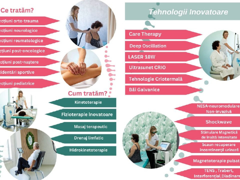 Clinica Nevis: Dispune de doua bazine si trei sali de kinetoterapie, precum si o sala moderna de fizioterapie echipata cu 11 dispozitive inovatoare.