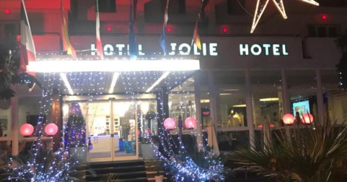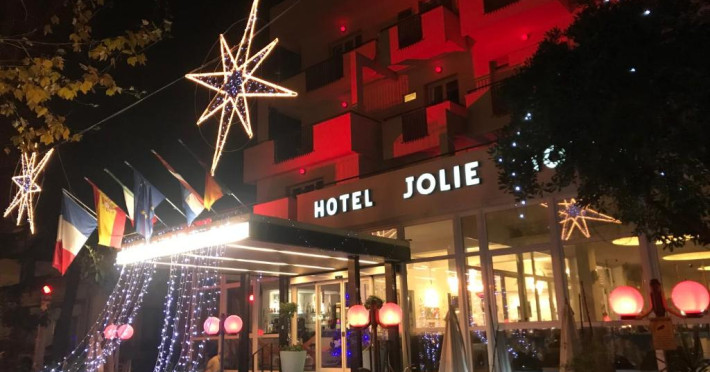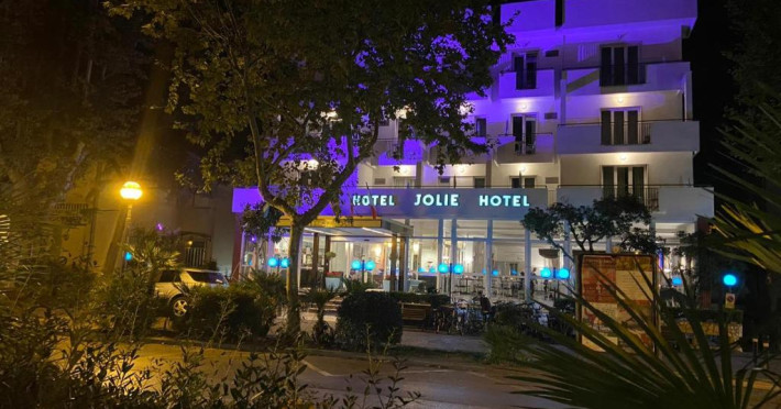 Hotelul Jolie se află in centrul istoric al orașului Rimini, la 100 m de plajă. Pune la dispoziție un restaurant, precum și camere cu baie proprie și WiFi gratuit. Oaspetii au la dispozitie o sală de gimnastică, o grădină umbrită si un bar.