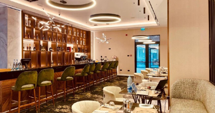 Restaurantul hotelului serveste preparate italiene si internationale, precum si deserturi de casa. In fiecare zi este servit un mic dejun tip bufet. Oaspetii pot savura bauturi la bar. Vara, oaspetii se pot relaxa pe terasa in aer liber de la Alexandrion Experience.