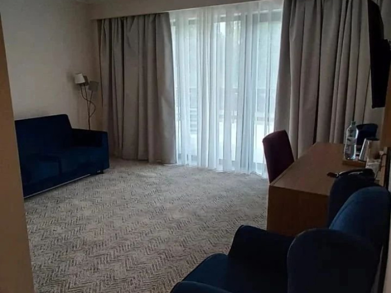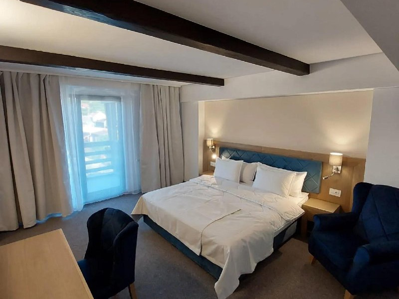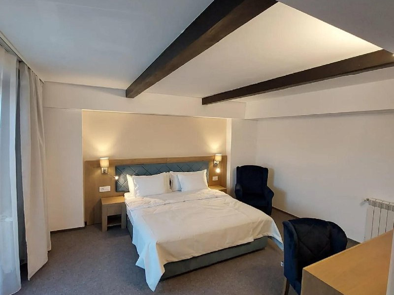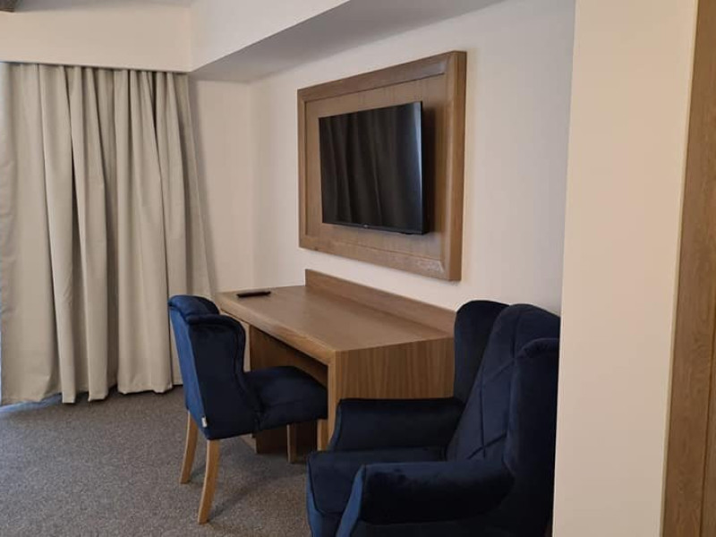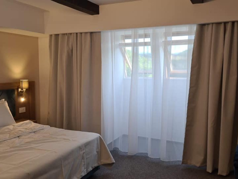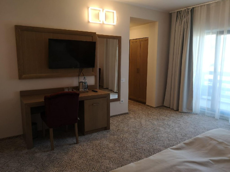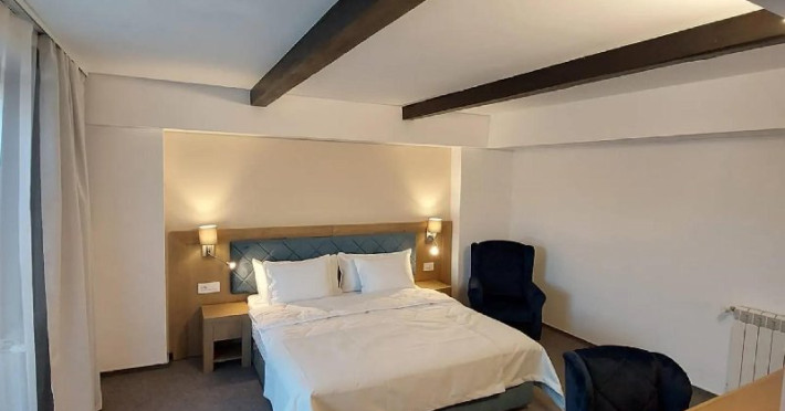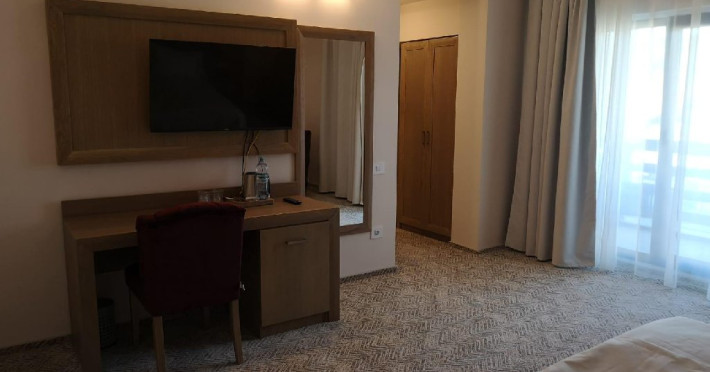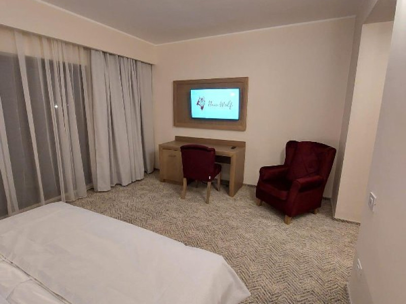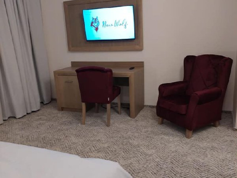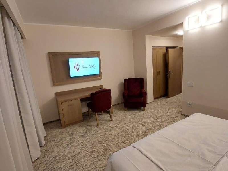 Hotel New Wolf dispune de camere duble si apartament (dormitor cu pat matrimonial, living cu canapea extensibila), dotate cu baie proprie, uscator de par, TV, internet, aer conditionat, minibar.