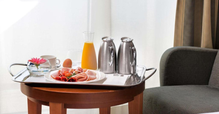 Restaurantul elegant de la proprietate servește atat mancăruri mediteraneene, cat și preparate internationale. Oaspeții iși pot incheia ziua in atmosfera destinsă a lounge barului.