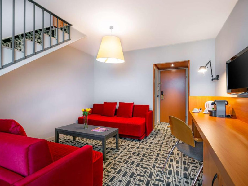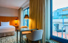 Camerele elegante beneficiază de design contemporan, fiind dotate cu aer condiționat, TV cu ecran plat și zone de relaxare confortabile. De la restaurantul panoramic cu terasă puteți admira priveliștea spectaculoasă asupra orașului și Castelului Praga.