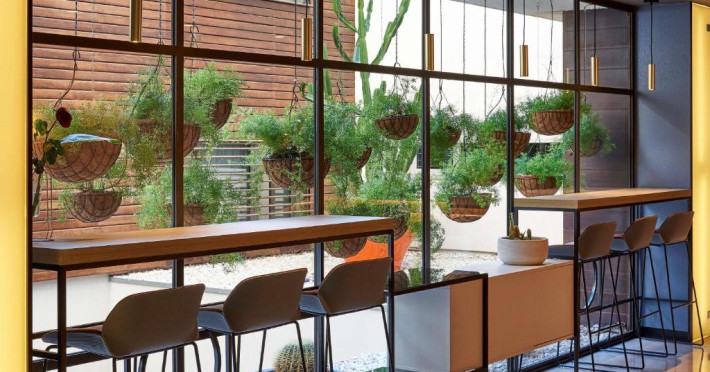 Hotelul are un restaurant care servește preparate din bucătăria mediteraneană proaspătă. Există, de asemenea, o cafenea-bar relaxantă. Acesta oferă și un mic dejun sănătos. Restaurantul este inchis in lunile de vară.