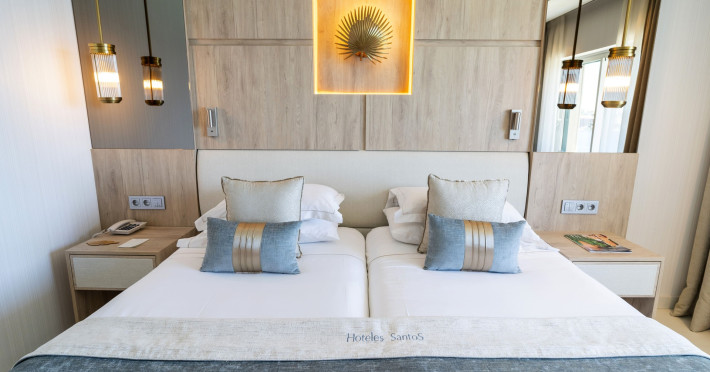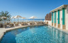 The hotel NIXE PALACE is located next to a beach. The air-conditioned hotel is equipped with a 24h reception, Wi-Fi, a jacuzzi as well as parking spaces. In the outdoor area you will find a garden as well as a heated pool that is open seasonally, where sun loungers, sun umbrellas and pool towels are available for free. There is also a children's pool. Furthermore, outside you can find a sun terrace. Inside the hotel you can use a heated indoor pool. You can store your valuables in the safe, and your luggage in the hotel`s storage room. There is also a laundry service available at an additional cost to customers. Guests at the accommodation can get a wake-up call from the hotel personnel. For conventions and other business meetings, the hotel offers a conference area. For guests on their honeymoon, the hotel has special offers such as special honeymoon packages. Due to its barrier-free facilities , such as barrier-free entrances, the hotel is also suitable for wheelchair users. Catering As catering services the hotel offers half board and breakfast only. Breakfast is offered from the buffet. Dinner is also served as a buffet. Full Board includes breakfast. For the meals, there are a restaurant with terrace (Mediterranean dishes) and the pool bar. Distances
