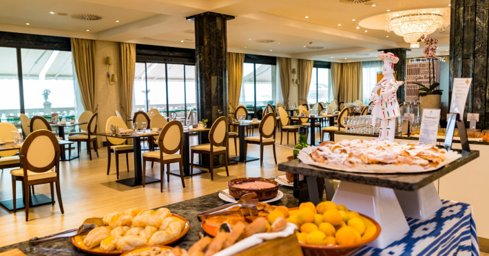 The hotel NIXE PALACE is located next to a beach. The air-conditioned hotel is equipped with a 24h reception, Wi-Fi, a jacuzzi as well as parking spaces. In the outdoor area you will find a garden as well as a heated pool that is open seasonally, where sun loungers, sun umbrellas and pool towels are available for free. There is also a children's pool. Furthermore, outside you can find a sun terrace. Inside the hotel you can use a heated indoor pool. You can store your valuables in the safe, and your luggage in the hotel`s storage room. There is also a laundry service available at an additional cost to customers. Guests at the accommodation can get a wake-up call from the hotel personnel. For conventions and other business meetings, the hotel offers a conference area. For guests on their honeymoon, the hotel has special offers such as special honeymoon packages. Due to its barrier-free facilities , such as barrier-free entrances, the hotel is also suitable for wheelchair users. Catering As catering services the hotel offers half board and breakfast only. Breakfast is offered from the buffet. Dinner is also served as a buffet. Full Board includes breakfast. For the meals, there are a restaurant with terrace (Mediterranean dishes) and the pool bar. Distances- Airport: approx. 18 km
