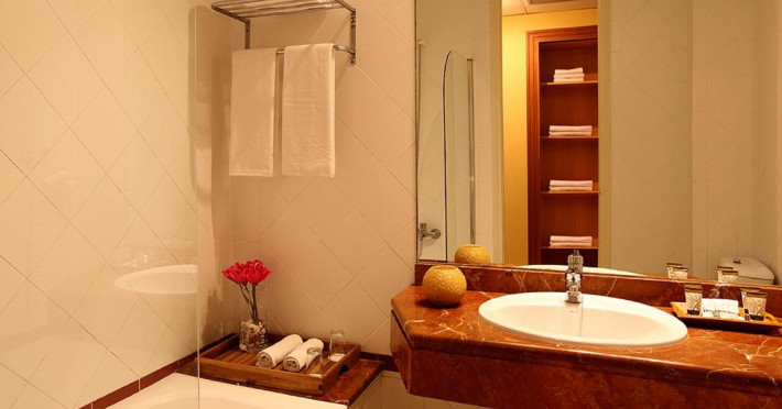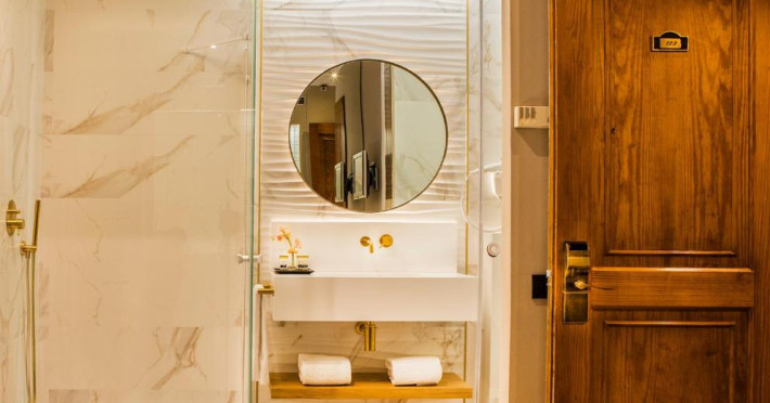 Hotelul are tavane ornamentate, lămpi turnate din bronz și cristal și podea de marmură, in stilul clădirii sale din secolul al XIX-lea.
