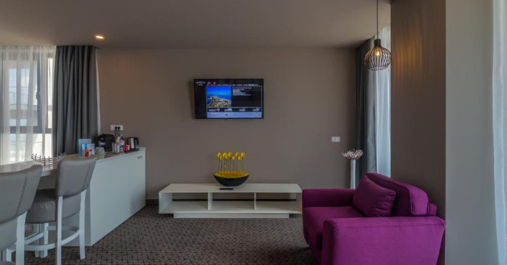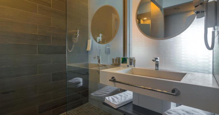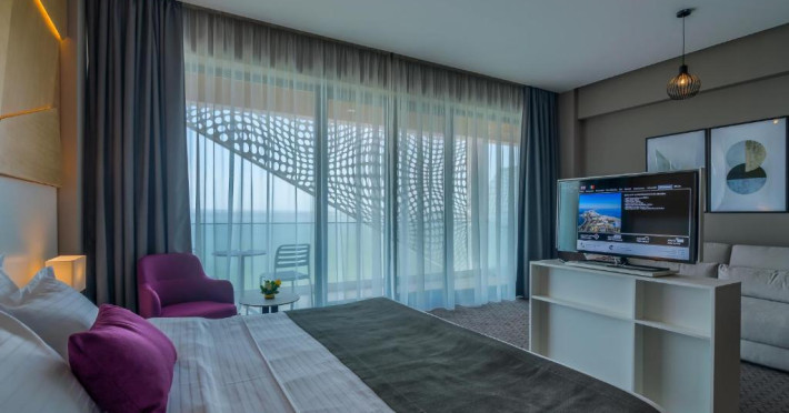 Facilități cameră dublă: pat matrimonial sau twin, baie proprie cu cadă sau duș, aer condiționat, televizor, telefon, uscător de păr, cană fierbător, halat de baie, papuci de casă, internet Wifi, minibar, seif, balcon.