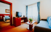 Apartamentele standard au aprox 30-40 mp si sunt formate din dormitor cu pat matrimonial (160x200) cu saltea ortopedica, tv si un living cu canapea extensibia, mocheta, balcon, aer conditionat, espresor de cafea, Tv, Wi-fi, telefon, seif, minibar cu produse, baia este dotata cu cabina de dus, uscator de par, halate de baie si papuci de camera, cosmetice baie.
