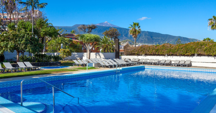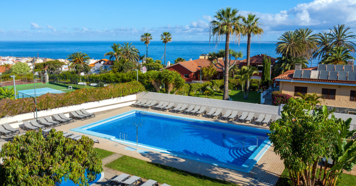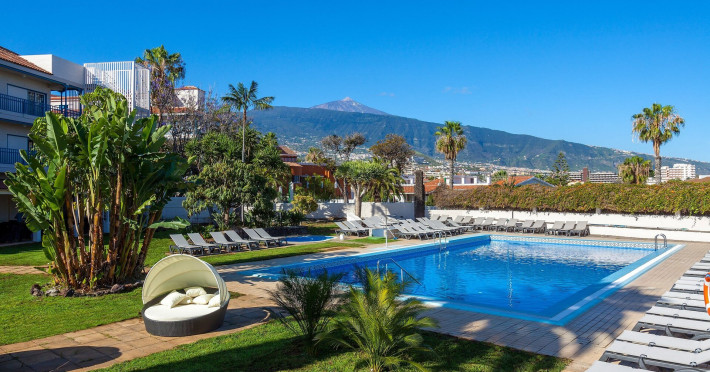 About 800 m from a beach and approximately 1,1 km from the sea is located the hotel Hotel O7 Tenerife. The nearest bars and restaurants are located directly next to the building. The old town is around 1 km away. There is a shuttle between the hotel and the airport (for a fee). Nearby there is a disco which offers entertainment in high season. To reach the beach a shuttle (for a fee) is provided. The GPS-verified hotel is equipped with a 24h reception (check-in is possible around the clock), a lobby, Wi-Fi, internet access, 3 lifts, a jacuzzi, showers and changing rooms, a first aid kit, parking spaces (limited) as well as a TV lounge with satellite TV. In the outdoor area you will find a garden as well as a supervised pool (open all year), where you can rent pool towels for a fee and sun loungers and sun umbrellas are available for free. For children there is also a separate children's pool. Furthermore, outside you can find a sun terrace. You can store your valuables in the safe, and your luggage in the hotel`s storage room. In addition, the hotel Hotel O7 Tenerife is video-monitored 24h a day. For very young guests, cots can also be provided. Kid`s chairs are available for a fee. There is also a laundry service available at an additional cost to customers as well as an ironing service. Ironing equipment can also be rented at the hotel for a fee. For your comfort there is a concierge service. The energy supply is 220 Volts. If you want to explore the holiday region, you can use the car and motorbike rental service close to the hotel (extra fee). At the reception, tickets are offered for excursions in the area. For guests on their honeymoon, the hotel has special offers such as special honeymoon packages or a basket of fruit in the room. In your hotel, a lot of focus is placed on sustainability. This includes the hotel`s own recycling bins and the provision of soap and shampoo dispensers. Euro/Master Card and Visa are accepted as means of payment. Due to its barrier-free facilities , such as a sliding door in the entrance area, a hotel door that can be opened manually, barrier-free entrances, wheelchair accessible rooms, a wheelchair accessible lift, a handrail in the elevator and wheelchair-accessible bathrooms, the hotel is also suitable for wheelchair users. Catering As catering services the hotel offers all-inclusive, all-inclusive light, half board, half board plus, full board, full board plus and breakfast only. Breakfast is offered from the buffet. Enjoy your lunch from the buffet or à la carte with starters, salads and desserts. Dinner is also served as a buffet with starters, salads and desserts. Half board includes breakfast and dinner. When booking half board plus, breakfast, lunch and beverages during meals are included. For the meals, there are a buffet restaurant with terrace (calorie-reduced, gluten-free and vegetarian dishes) and a bar, the cafeteria as well as the pool bar. The drinks menu of the hotel includes water, soft drinks, coffee and tea, beer and wine. For dinner, guests are asked to wear appropriate clothing in the restaurant. Distances