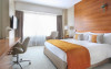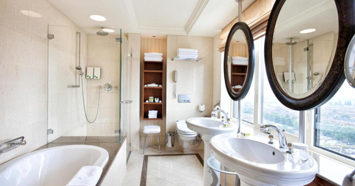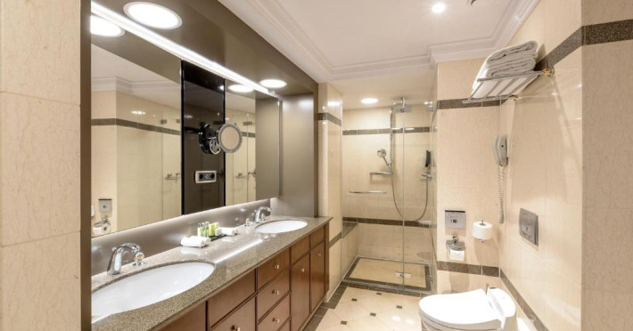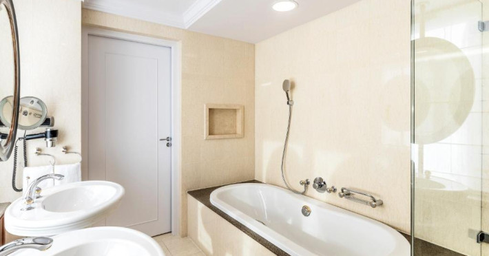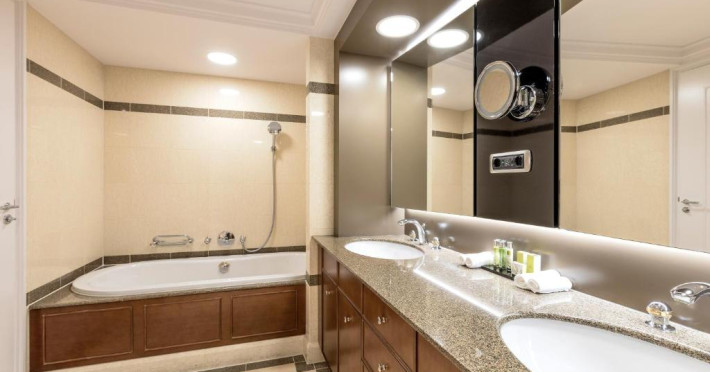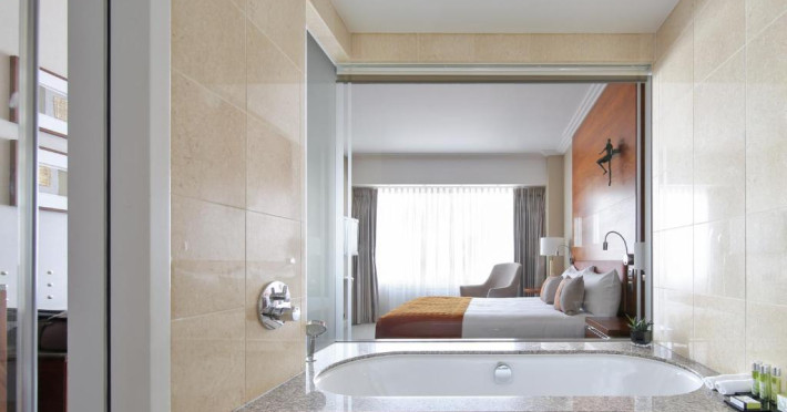 All 300 spacious rooms are designed to provide comfort. Every room has an Eastborn bed, a separate bathtub as well as a rain shower and a large desk. Guests staying in an Executive Room or above enjoy access to the exclusive Executive Lounge, serving pre-dinner drinks and light snacks. All accommodations come with complimentary Wi-Fi, Nespresso machines and access to the fitness facilities.