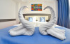 Camerele duble sunt dotate cu sistem de acces pe baza de cartela magnetica, sistem climatizare centralizata, TV LCD si cablu, seif, minibar, telefon, fierbator cafea/ceai, internet wi-fi, baie proprie cu cabina de dus si uscator de par, balcon dotat cu masuta cu 2 scaune si uscator de rufe. O parte dintre camerele hotelului au vedere laterala catre mare.