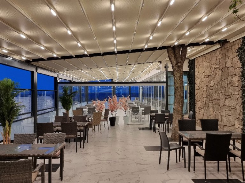 In afara de restaurantul Olimpic, complexul dispune si de terasa ce ofera o vedere spectaculoasa spre mare. La aceasta terasa turistii pot servi masa A LA CARTE - CONTRA COST .
