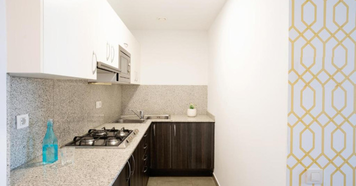 Fiecare apartament de la Ona Living Barcelona este decorat in culori deschise și are mobilier modern. Oferă și o zonă de relaxare spațioasă, cu o canapea extensibilă. Baia este dotată cu articole de toaletă și uscător de păr.