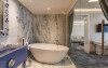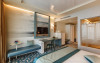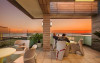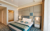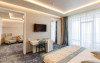 Apartamente: 4 - dintre care 2 senior suite si 2 senior sky suite. Cele 2 Senior Suite creeaza pentru dumneavoastra spatiul ideal de cazare in timpul unei calatorii de afaceri, dar si o atmosfera relaxanta si primitoare pentru un sejur excelent pentru familiile cu copii, cat si pentru cuplurile de toate varstele. Suitele au vedere frontala la mare, beneficiaza de terase vaste, complet mobilate, iar intimitatea este completata de prezenta plantelor exotice. Camera este dotata cu living cu canapea, o eleganta comoda ce incorporeaza barul, lampadare elegante si finisaje de cea mai inalta calitate, iar dormitorul dispune de un pat king-size, o comoda spatioasa cu o oglinda eleganta si un dressing generos. Senior Sky Suite sunt situate la ultimul etaj al hotelului, au vedere frontala la mare si beneficiaza de terase vaste, complet mobilate fiind dotate astfel: Living cu canapea, o eleganta comoda ce incorporeaza barul, lampadare elegante si finisaje de cea mai inalta calitate, dormitorul cu pat king-size va pune la dispozitie o comoda spatioasa cu o oglinda eleganta si un dressing generos. Suitele dispun de 2 bai mari, una amplasata in zona dormitorului dotata complet, avand cabina de dus, uscator de par, cea de-a doua situata in living este dotata cu o cada spatioasa.