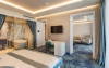 Dotari camere: aer conditionat, TV -LCD, minibar, seif, baie cu dus, internet -acces gratuit internet wireless, uscator de par. Toate camerele au vedere la mare, sunt elegant decorate, pastrand cromatica naturala a peisajului, nuantele de turquoise, albastrul marin si auriul nisipului fiind in ton cu amplasarea hotelului direct pe plaja, sistem de acces in camera pe baza cartelelor magnetice, halate baie, papuci si un meniu special de perne la dispozitia dumneavoastra intr-un pat king - size.