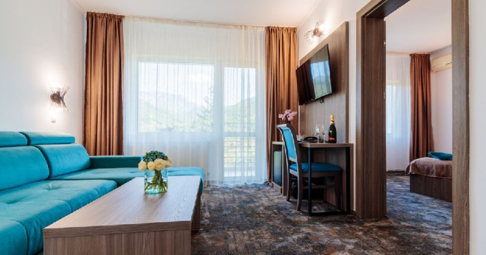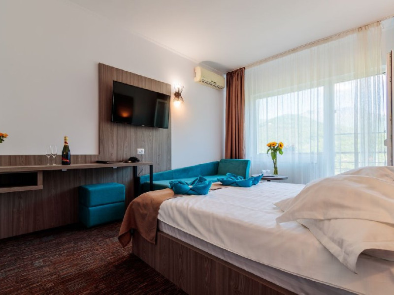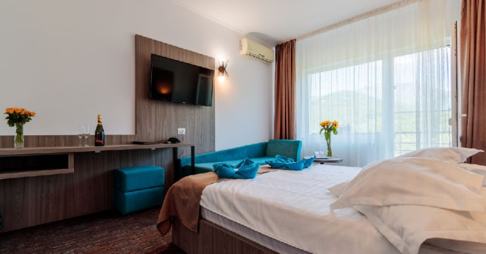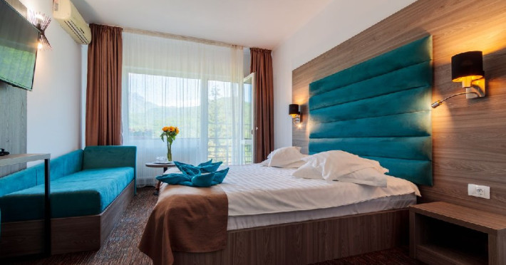 Apartamentele sunt dotate cu pat matrimonial si canapea extensibila, avand si balcon cu panorama.