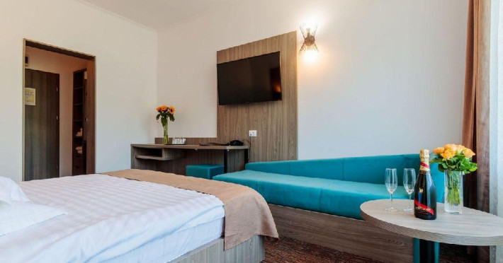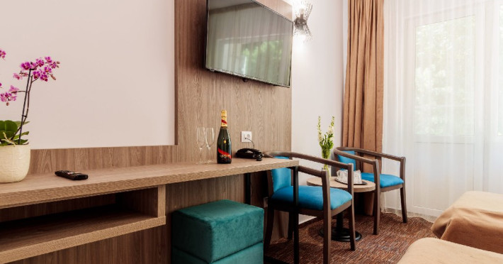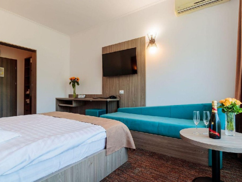 Toate camerele dispun de: minibar, seif in camera, TV, internet WiFi, acces cu cartela magnetica, baie proprie cu dus, uscator de par, produse cosmetice pentru baie.