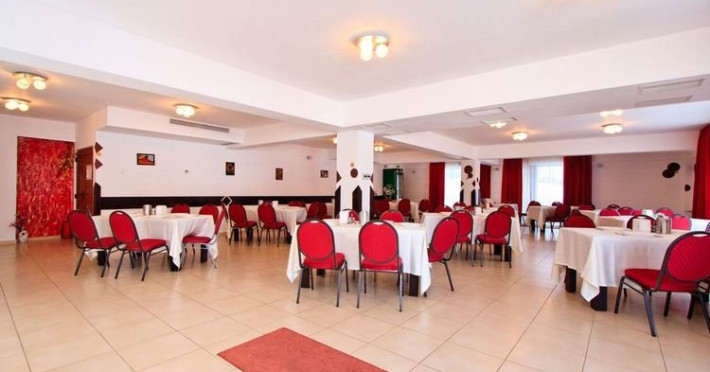 Restaurant Salonul Rosu, la etajul doi al hotelului, cu panorama deosebita, poate fi de asemenea, o sala de evenimente pentru organizarea diverselor petreceri sau mese festive.