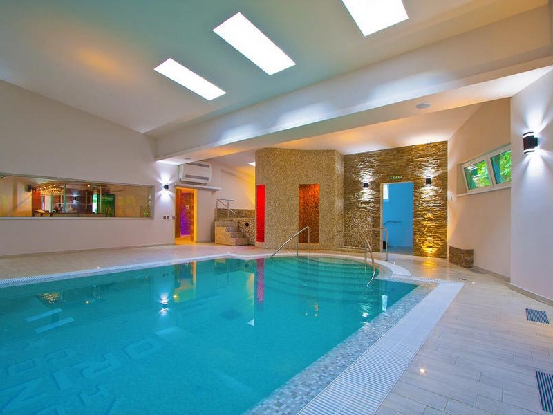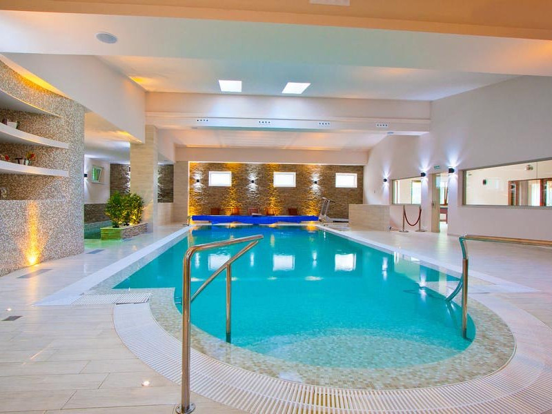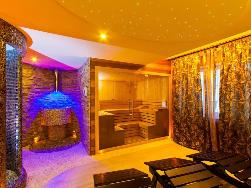 Centrul SPA dispune de piscina cu apa dulce incalzita, piscina cu apa sarata - adusa direct de la Ocnele Mari, jacuzzi, dusuri moderne cu hidromasaj, sauna finlandeza, baie turceasca-hammam, fantana de gheata pentru revigorare, dus emotional ce imbina ploaia tropicala cu ceata rece, cabine de masaj si sala de cromoterapie si relaxare. Salina din SPA are pereti din caramizi de sare de Himalaya, cu proprietati terapeutice speciale si o grota de sare formata din bolovani de sare de la Ocnele Mari.