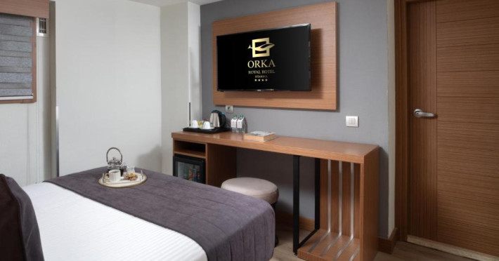 Hotelul Orka Royal este situat in Istanbul - orașul vechi, la cațiva pași de gara și stația de tramvai Sirkeci, și oferă camere cu aer condiționat și acces gratuit la internet WiFi. Hotelul are o terasă pe acoperis cu vedere panoramică spectaculoasă la Bosfor. Oaspeții beneficiază de acces gratuit la facilitățile de spa ale hotelului.