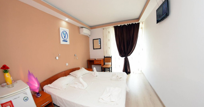 Dotari camere: aer conditionat, TV cablu, frigider, pardoseala cu parchet sau mocheta, baie cu cadita de dus.