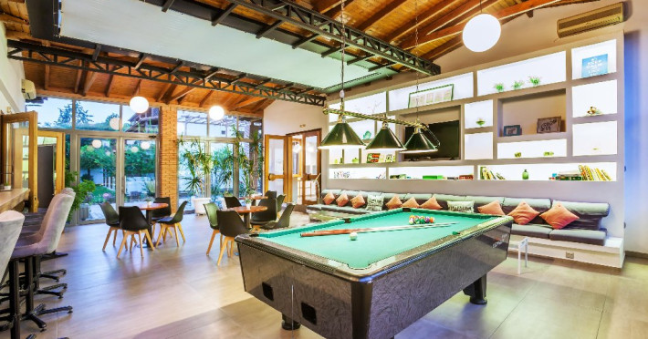 Facilitati hotel: receptie 24/7, restaurant, pool/snack bar, piscina exterioara + jacuzzi, piscina pentru copii, bar principal cu masa de biliard, camera TV, tenis de masa, sah, loc de joaca pentru copii, animatie pentru copii si adulti, parcare, inchiere masini/biciclete, shuttle bus, camera de bagaje, centru business, fax/fotocopiere, spalatorie/curatatorie (la cerere), servicii medicale (la cerere), patut pentru bebelusi, Wi-Fi