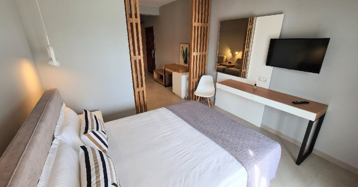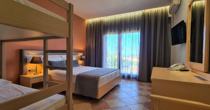 Tripla Standard, 21mp: max. 3 adulti, 1 pat dublu + 1 pat single, fara posibilitate de adaugare extra pat sau baby cot.