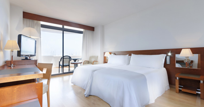 The hotel Hotel Palma Bellver AFFILIATED BY MELIÁ is located approximately 2,9 km from a beach. The old town is around 1,7 km away. The nearest shops you can reach within around 1,8 km, a supermarket is around 200 m away. Nearby there is a theatre which offers entertainment in high season. The beach is patrolled by a lifeguard. The air-conditioned hotel has a 24h reception (check-in is possible around the clock), a lobby bar, Wi-Fi, 3 lifts, parking spaces as well as a TV lounge with satellite TV. In the outdoor area you will find a pool that is open seasonally (open all year), where sun loungers, sun umbrellas and pool towels are available for free. Furthermore, outside you can find a sun terrace. For very young guests, kid`s chairs, highchairs and cots can be provided. You can store your luggage in the hotel's storage room. There is also an ironing service. For your comfort the hotel page will ensure you are looked after. If necessary, you can contact the medical centre (for a fee). Guests at the accommodation can get a wake-up call from the hotel personnel. For conventions and other business meetings, the hotel offers a conference area with a total of 150 seats as well as overhead projector. If you want to explore the holiday region, you can use the car rental service close to the hotel (extra fee). For guests on their honeymoon, the hotel has special offers such as special honeymoon packages. Due to its barrier-free facilities , such as barrier-free entrances, wheelchair accessible rooms and wheelchair-accessible bathrooms, the hotel is also suitable for wheelchair users. Catering As catering services the hotel offers half board. Breakfast is offered from the buffet, à la carte or as brunch. Enjoy your lunch from the buffet, as a set meal or à la carte. Dinner is also served as a set meal or à la carte. For the meals, there are a restaurant with terrace (Mediterranean, gluten-free and vegetarian dishes) and 2 bars as well as the pool bar. Distances- Discotheque: approx. 700 m