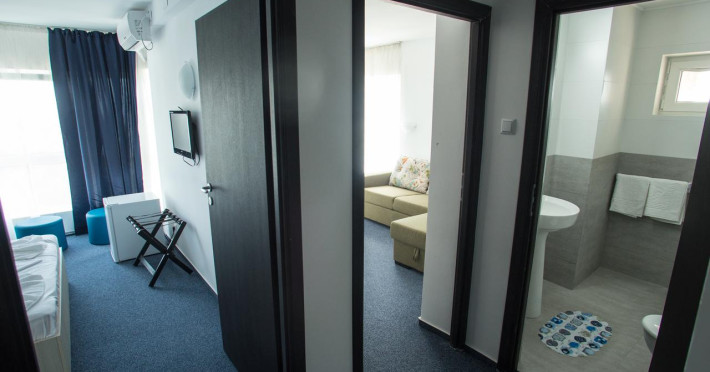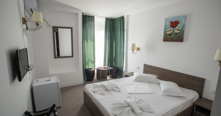 Facilități cameră dublă: pat matrimonial sau twin, baie proprie cu cadă sau duș, aer condiționat, televizor, internet Wifi.