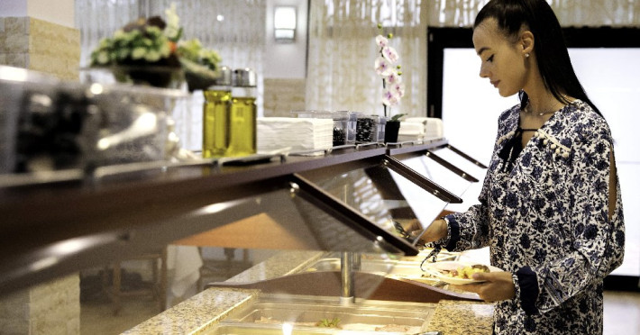 Se acorda in restaurantul Paradiso, categoria 3 stele, in sistem bufet suedez.