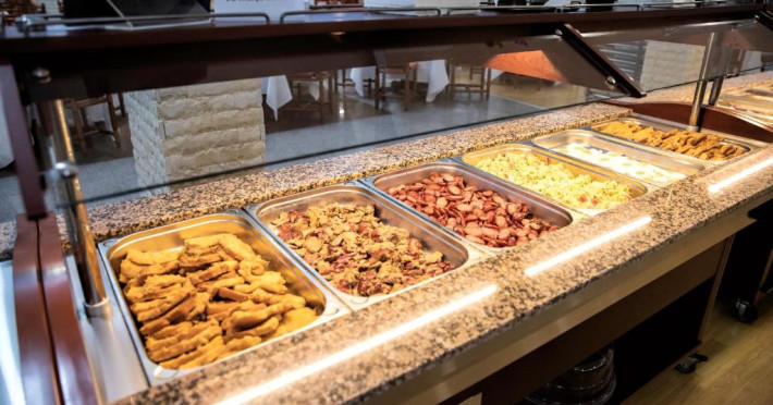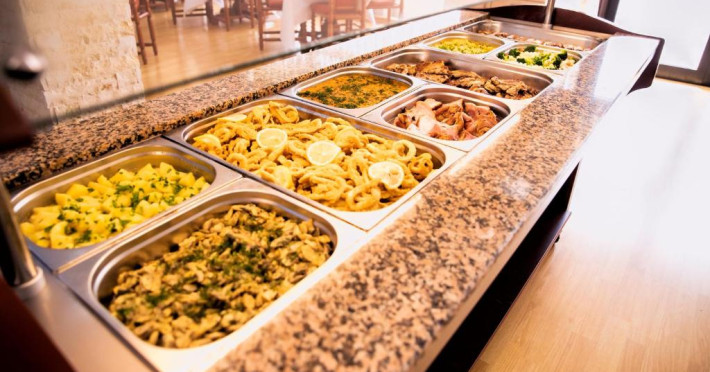 Restaurantul interior serveste preparate culinare din bucătăria internatională.