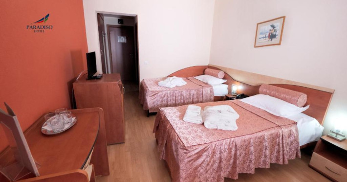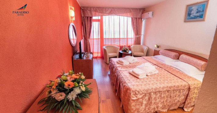 Toate camerele Hotelului Paradiso au baie privată cu dus, aer conditionat, minibar si televizor. Balcoanele oferă vedere completă sau partială la mare.