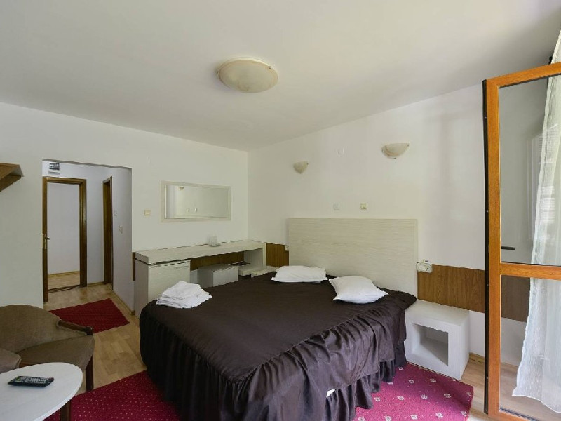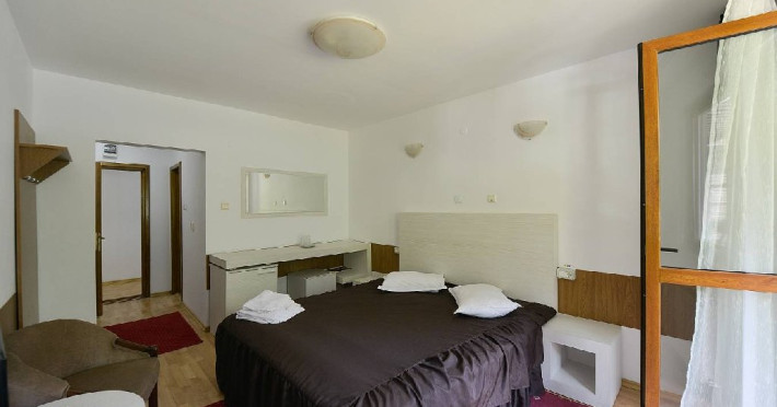 Apartamentul ofera un dormitor cu pat matrimonial si un living cu canapea extensibila. Cele doua incaperi nu au usa despartitoare.