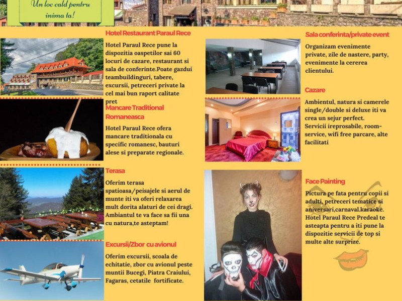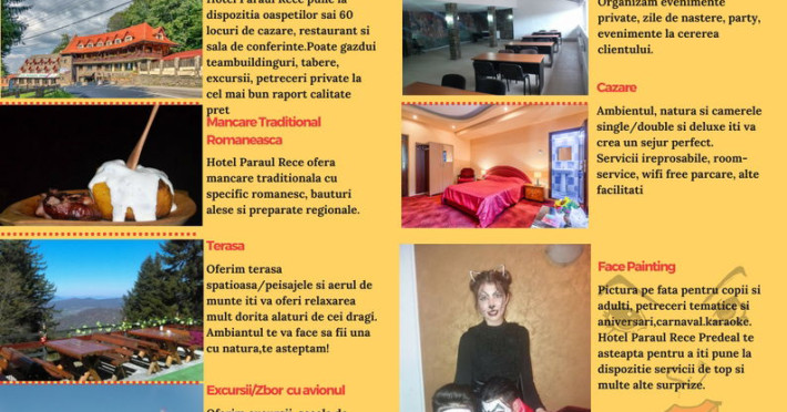 Hotel Paraul Rece a fost complet renovat in 2010 si este amplasat intr-un cadru natural langa partia de schi din statiunea Paraul Rece in inima muntilor. Puncte turistice din zona sunt Castelul Cantacuzino sau Manastirea Caraiman. Hotelul pune la dispozitia oaspetilor sai 60 locuri de cazare, structurate in 26 camere cu un design modern, ce imbina in mod armonios eleganta cu intimitatea. Toate camerele sunt spatioase, modern mobilate, dotate cu mocheta, TV cu ecran plat si baie private. Accesul Wi-fi este disponibil gratuit in toata locatia. Restaurantul Paraul Rece are specific romanesc si ofera cele mai gustoase preparate ce surprind chiar si cei mai pretentiosi gurmanzi. Acesta poate gazdui pana la 60 de persoane. Suplimentar oaspetii beneficiaza de parcare gratuita si la un cost aditional, un centru de conferinte complet dotat si utilat.Datorita dinamicitatii domeniului disponibilitatea ofertelor se modifica de la un moment la altul. De aceea ofertele sunt valabile in limita locurilor disponibile. Agentia nu este responsabila pentru eventualele neconcordante care pot aparea intre informatiile privind tarifele si alte detalii din site si informatiile primite in agentie. In aceste cazuri vor avea prioritate, intotdeauna, informatiile primite in agentie.
