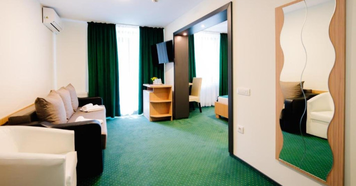 Hotelul dispune de parcare proprie, internet Wi-FI, restaurant cu terasa si baza de tratament.