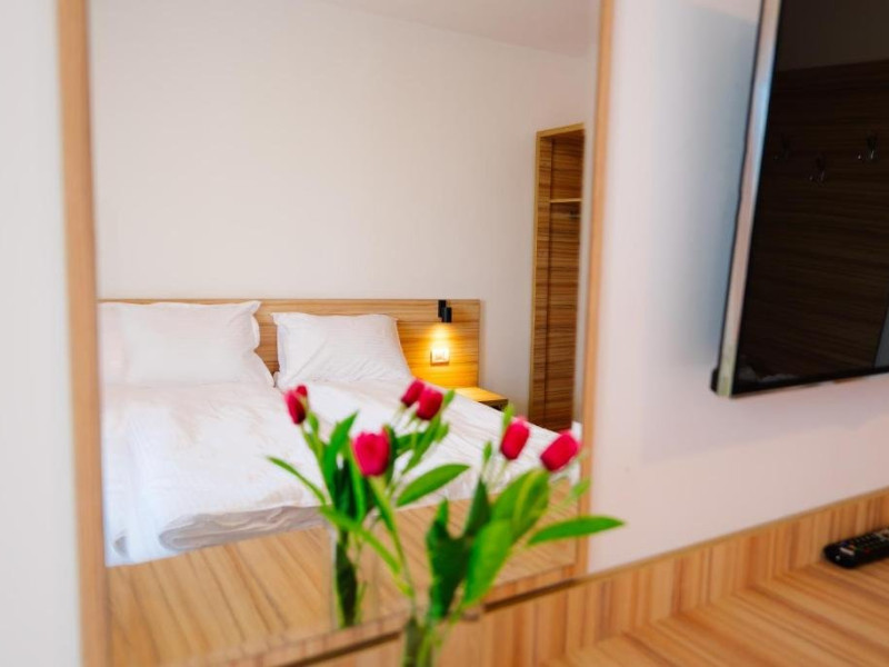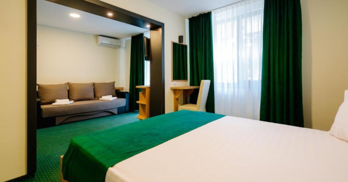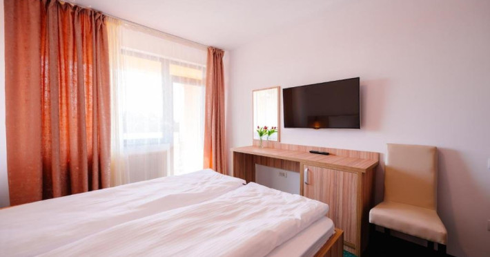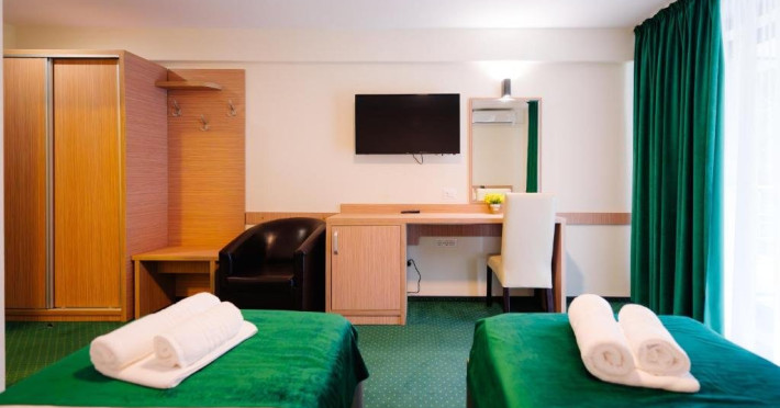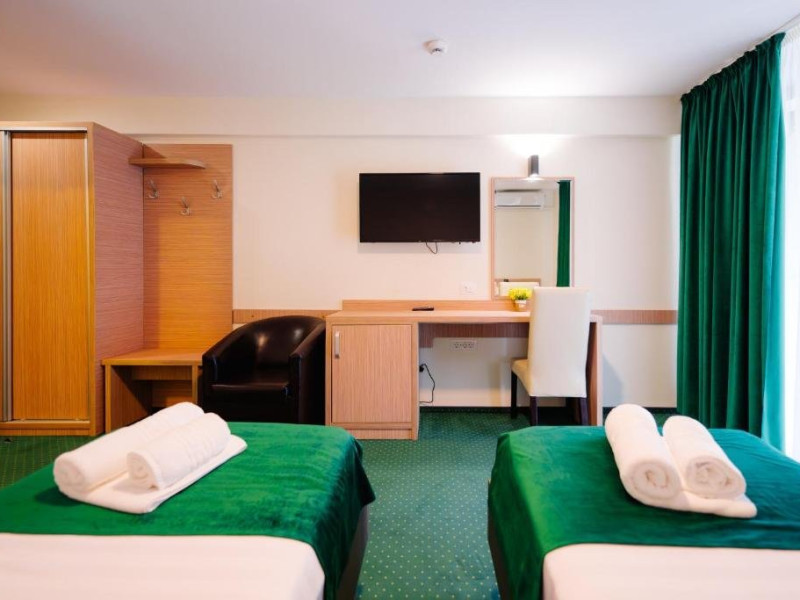 Toate camerele dispun de: telefon, TV LED, internet WI-FI, mini frigider, baie cu dus, aer conditionat.