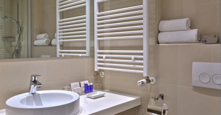 Facilități cameră dublă: pat matrimonial sau twin, baie proprie cu cada sau duș, aer condiționat, televizor, telefon, internet Wifi, minibar (contra cost), seif.