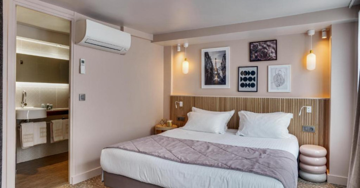 Camerele moderne de la Passy Eiffel au minibar și TV cu canale prin satelit. Toate camerele sunt dotate cu aer conditionat, iar unele oferă vedere la Turnul Eiffel.