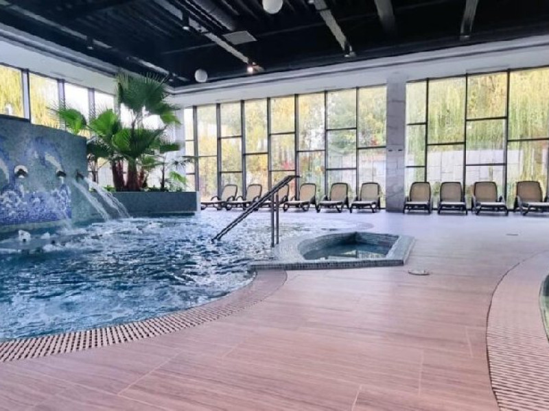 INFORMATII GENERALE: Complexul Hotelier Wellness Spa Perla se bucura de o amplasare privilegiata in statiunea balneo-climaterica Baile 1 Mai. Este alegerea perfecta pentru relaxare si recuperare, atat pentru turistii leisure cat si pentru clientii business. Renumit pentru mancarea gustoasa, centrul wellness si piscinele generoase.DESCRIERE UNITATE DE CAZARE: La dispozitia turistilor sunt 4 bazine exterioare, 6 bazine interioare, 3 tipuri de sauna, 13 tipuri de tratamente de recuperare, 2 terase, restaurant si lobby bar, 2 sali de conferinta, 1 sala de fitness, teren de fotbal, centru de wellness si SPA. o statie de incarcare pentru auto electrice.