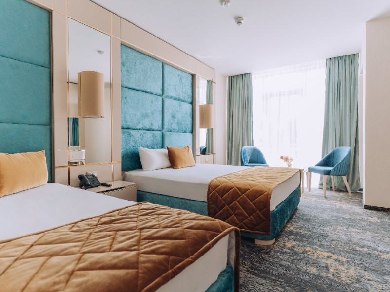 Camerele duble standard sunt dotate cu minibar, telefon, tv, uscator de par, halate si papuci, climatizare. Potrivite pentru 2 adulti. Camerele Executive au aceleasi dotari insa sunt mai spatioase si au un pat matrimonial plus inca un pat de o persoana, pot fi considerate si triple. Potrivite pentru cazarea a 2 adulti si un copil sau 3 adulti. Apartamentele au un dormitor si un living cu canapea extensibila si sunt potrivite pentru cazarea a 3 adulti sau 2 adulti si 2 copii.