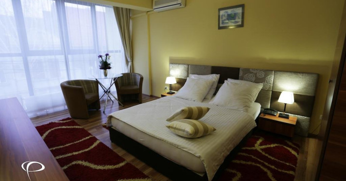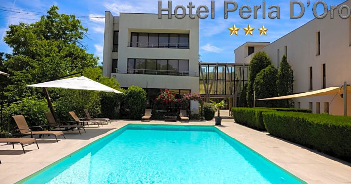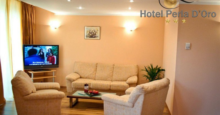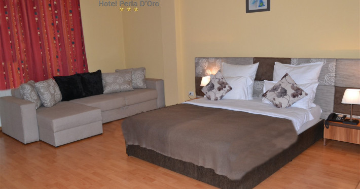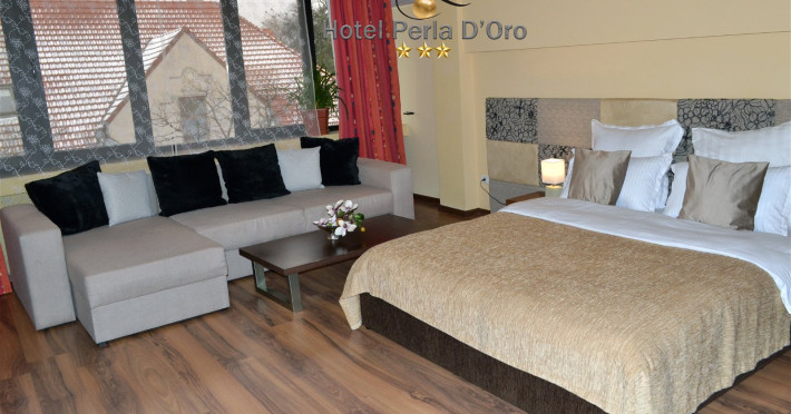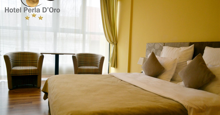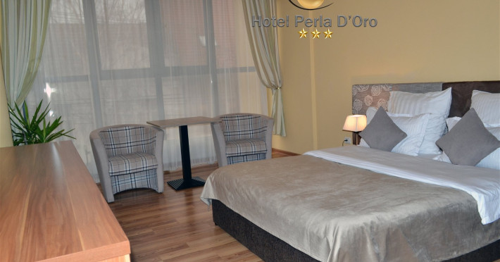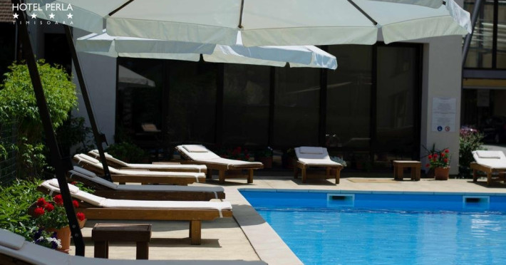 Hotel Perla DâOro este situat in orasul Timisoara la 1 km de Piata Unirii si de cele mai importante atractii turistice. Echipat cu facilitati ultramoderne, acesta este ideal atat pentru un city break precum si pentru o calatorie de afaceri. Hotel Perla DâOro Timisoara ofera cazare de 4 stele, dispunand de 29 de camere, impartite in camere single, duble, duble twin si apartamente suite. Camerele sunt dotate cu aer conditionat, Tv, baie propie, mini-bar, telefon. Accesul la internet Wi-Fi este disponibil gratuit in tot hotelul. Turistii pot degusta mancarea italiana la Pomo DâOro sau specialitati internationale in restaurantul Perla, ambele fiind plasate in imediata apropiere a hotelului. Tot aici se pot organiza diverse evenimente sau petreceri. Sala de conferinte a hotelului are o capacitate de 120 de persoane si este echipata cu sonorizare, video-proiector, climatizare, lumina naturala, flip-chart, consumabile, birou. Suplimentar, hotelul mai ofera si bar, sauna, centru SPA, solar, masaj, sala de fitness, piscina in aer liber, teren de joaca pentru copii, gradina si parcare gratuita.Datorita dinamicitatii domeniului disponibilitatea ofertelor se modifica de la un moment la altul. De aceea ofertele sunt valabile in limita locurilor disponibile. Agentia nu este responsabila pentru eventualele neconcordante care pot aparea intre informatiile privind tarifele si alte detalii din site si informatiile primite in agentie. In aceste cazuri vor avea prioritate, intotdeauna, informatiile primite in agentie.