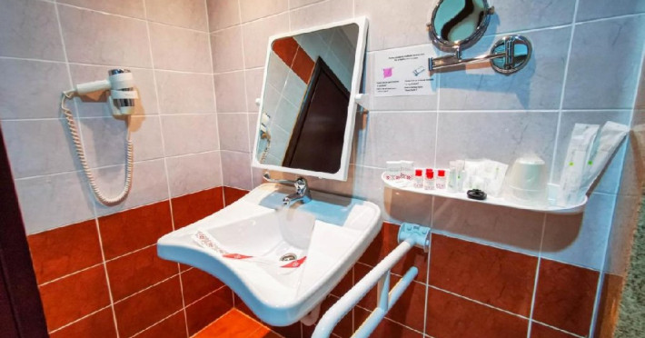Camerele pentru persoane cu dizabilitati au o suprafata de 23 mp, dispunand de aceleasi dotari, adaptate la nevoile si cerintele acestor persoane.